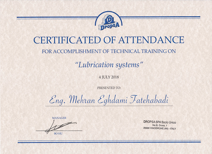 گواهینامه فنی آقای مهندس مهران اقدامی